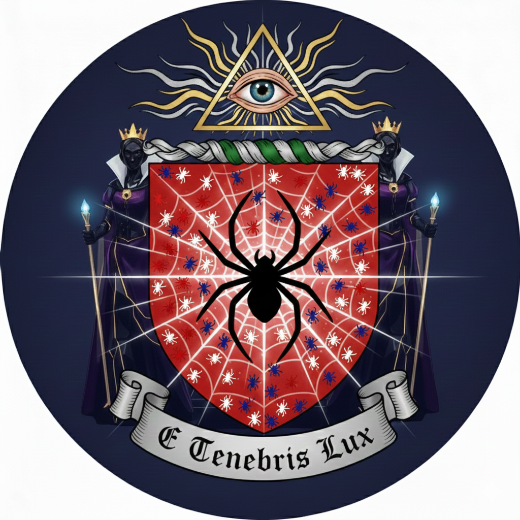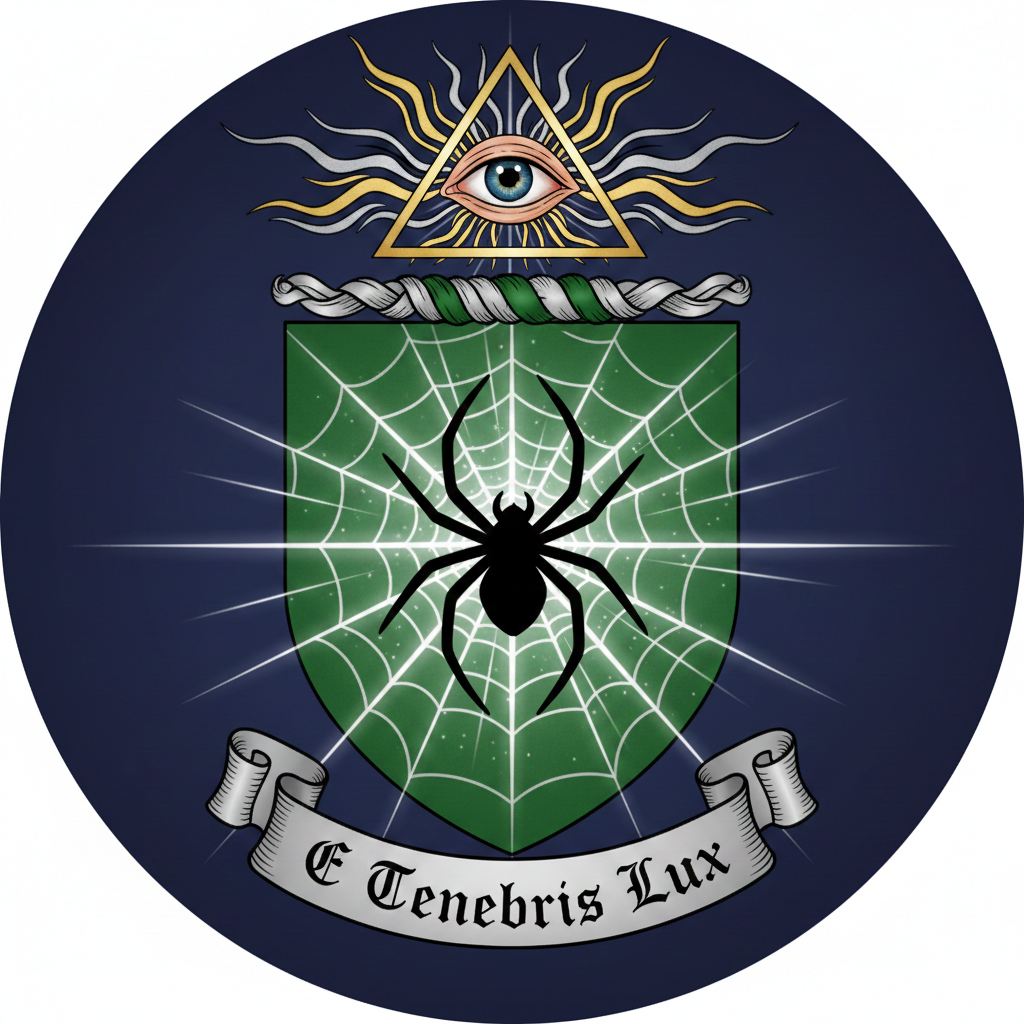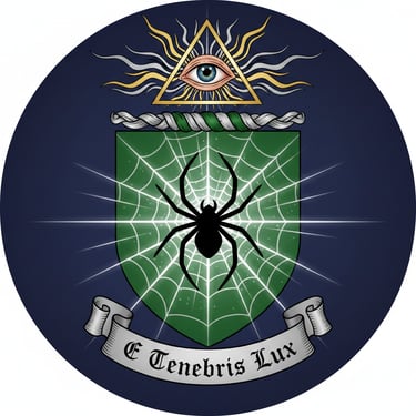 This Coat of Arms represents that discovery. It honors a moment of raw, magical clarity—a spider weaving photons—and anchors it in the disciplined structure of architectural math. From the 'scattered' spiders to the 'all-seeing' crest, this design serves as a permanent reminder of my core philosophy: Never think you know everything, as that is the devil’s blindspot. True light—E Tenebris Lux—is found only by those humble enough to keep looking for the patterns."