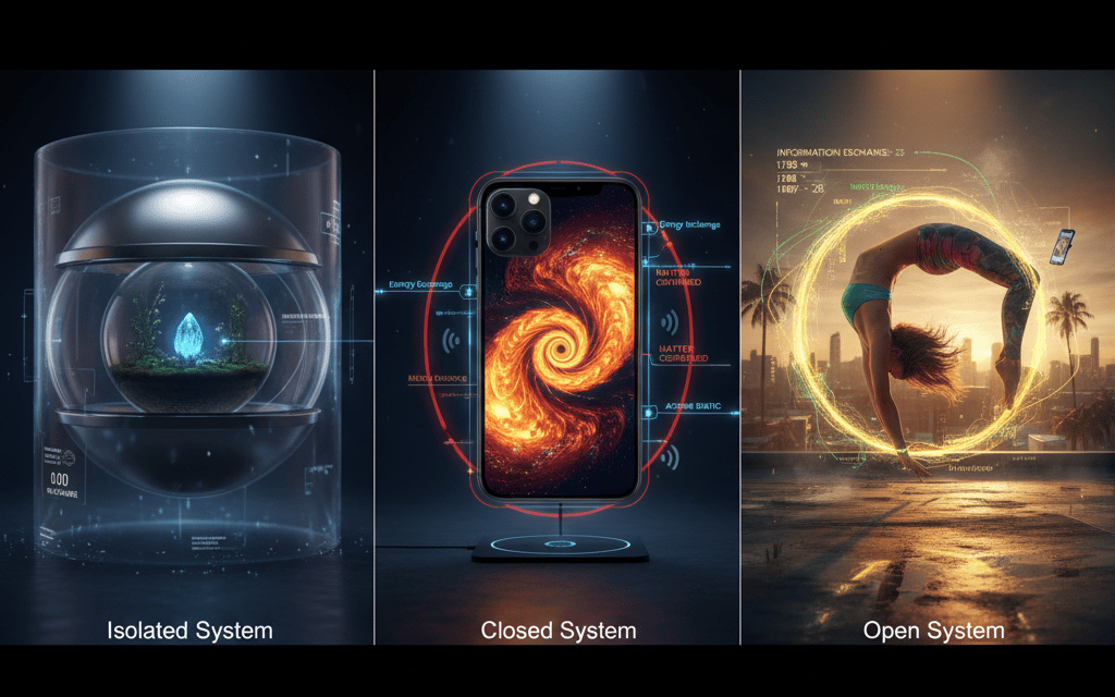 To understand the truth, one must know which "door" is open: 1) THE ISOLATED SYSTEM: A vault with no exchange. This is the "Devil’s Blindspot"—thinking you know everything while sitting in the dark. 2) THE CLOSED SYSTEM: The "A/C State." Energy comes in, but the matter is recycled and stale. It is safe, but it lacks the "Spruce" scent of the world.3) THE OPEN SYSTEM: The "Flow-Thru." When both doors are open, the air doesn't fight the walls. It becomes a Laminar Flow—a "Beautiful Breath" that clears the atmosphere and leaves only the Honest Single Light.