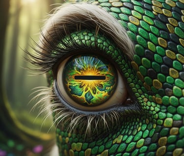 Animals don't "think" about color; they react to it as a Power Symbol. A bird sees the "Siren" red of a berry and its brain says "Exhale Energy" (Eat). A cat sees a shadow move in the "Flow-Thru" of the dark and its brain engages the "Python's Eye" focus to hunt. Animal • Vision System • Primary Instinctual Trigger • Birds/Ducks •Tetrachromat (UV) •Finding hidden patterns & mates. Squirrels •Trichromat • Distinguishing ripe vs. unripe food. Cats/Dogs •Dichromat • (Blue/Yellow)Spotting motion in low-light "Flow".