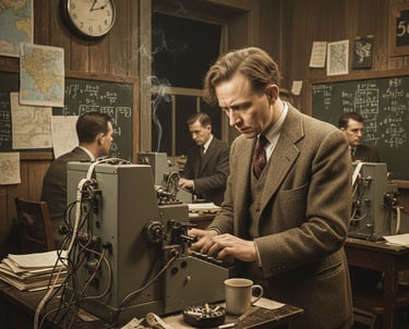 The Enigma Machine: Turing played a pivotal role at Bletchley Park, the UK's top-secret codebreaking center during WWII. He was instrumental in developing techniques and machines to decipher the German Enigma code.