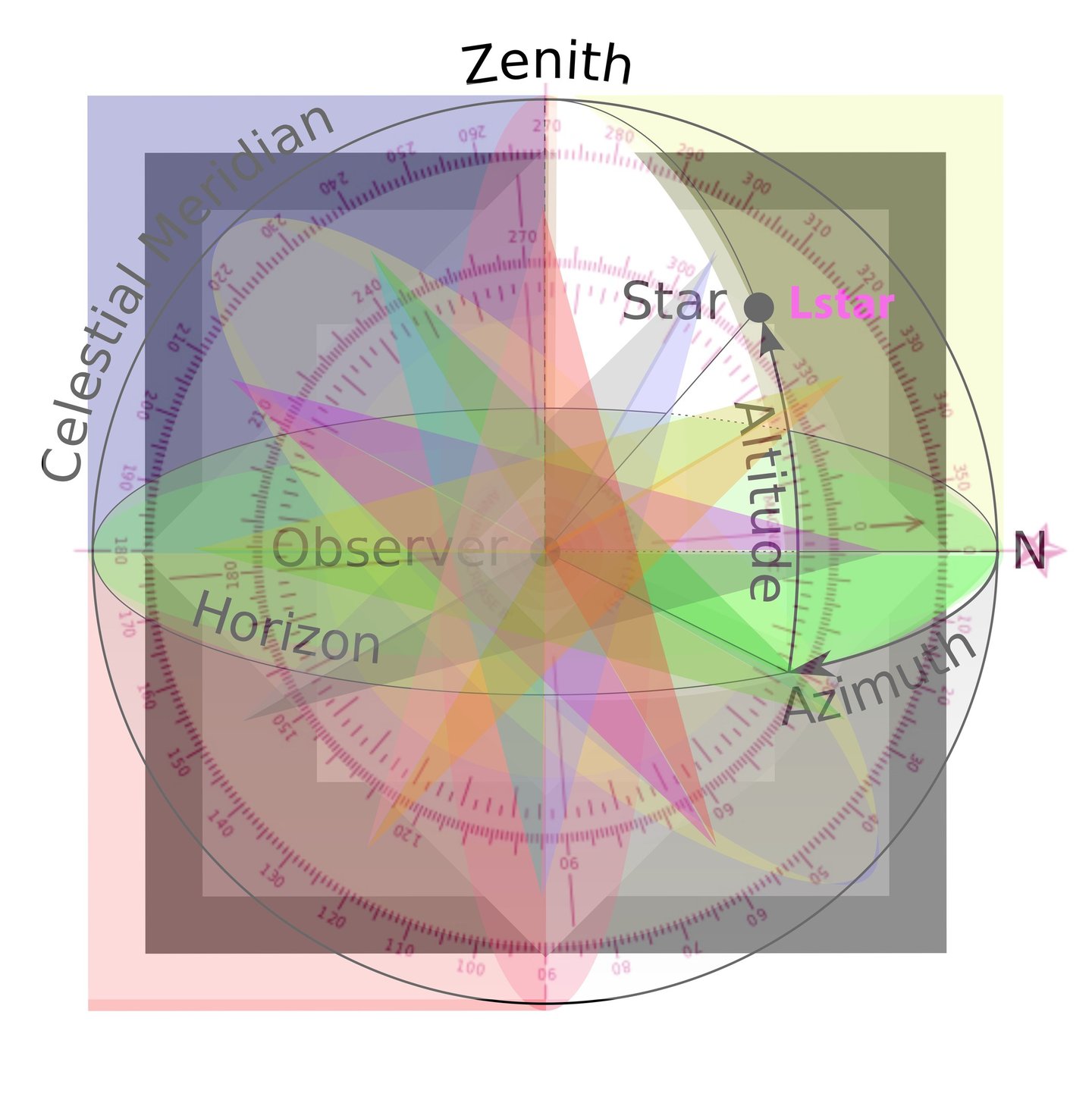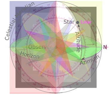 This image is the "Python's Eye" for your website's UI. It maps the Observer against the Horizon, Altitude, and Azimuth.
